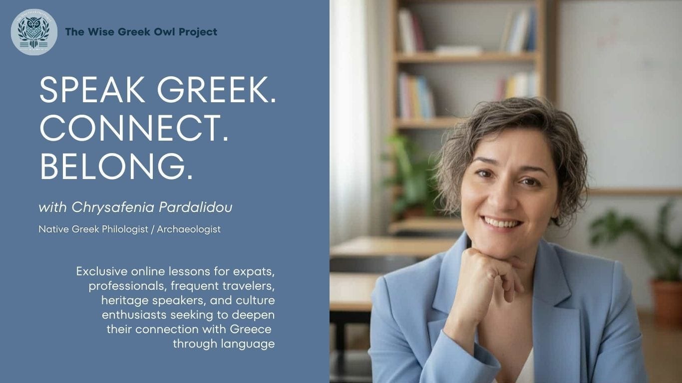 I’m Chrysafenia Pardalidou—certified Greek language tutor, cultural nerd, and your personal coach in this adventure. With years of teaching experience and a background in archaeology and cultural management, I make Greek make sense. More importantly? I make it stick. Because this isn’t just about learning a language. It’s about living it—with confidence, joy, and a touch of ancient flair.