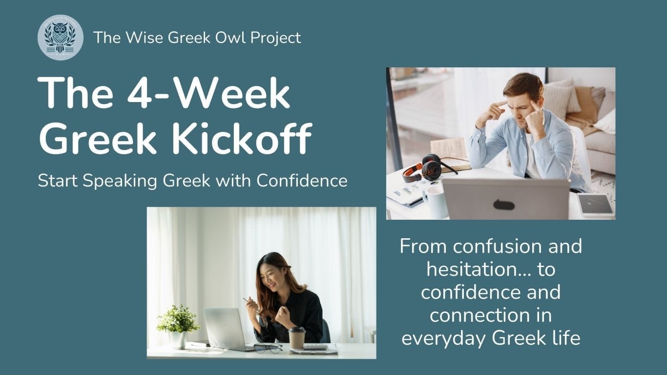 however, you absolutely will start speaking Greek! In four weeks, you'll gain the chance to learn how to handle simple everyday conversations (introductions, ordering, shopping, small talk, idioms). But, results come only with a small, consistent weekly commitment from you!